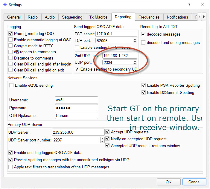 Once running on the primary, start another instance of Gridtracker on the network computer.